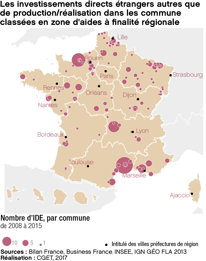 Il s'agit du nombre d'IDE (Investissements directs étrangers) autres que de production/réalisation par commune classée en zone d'aide à finalité régionale