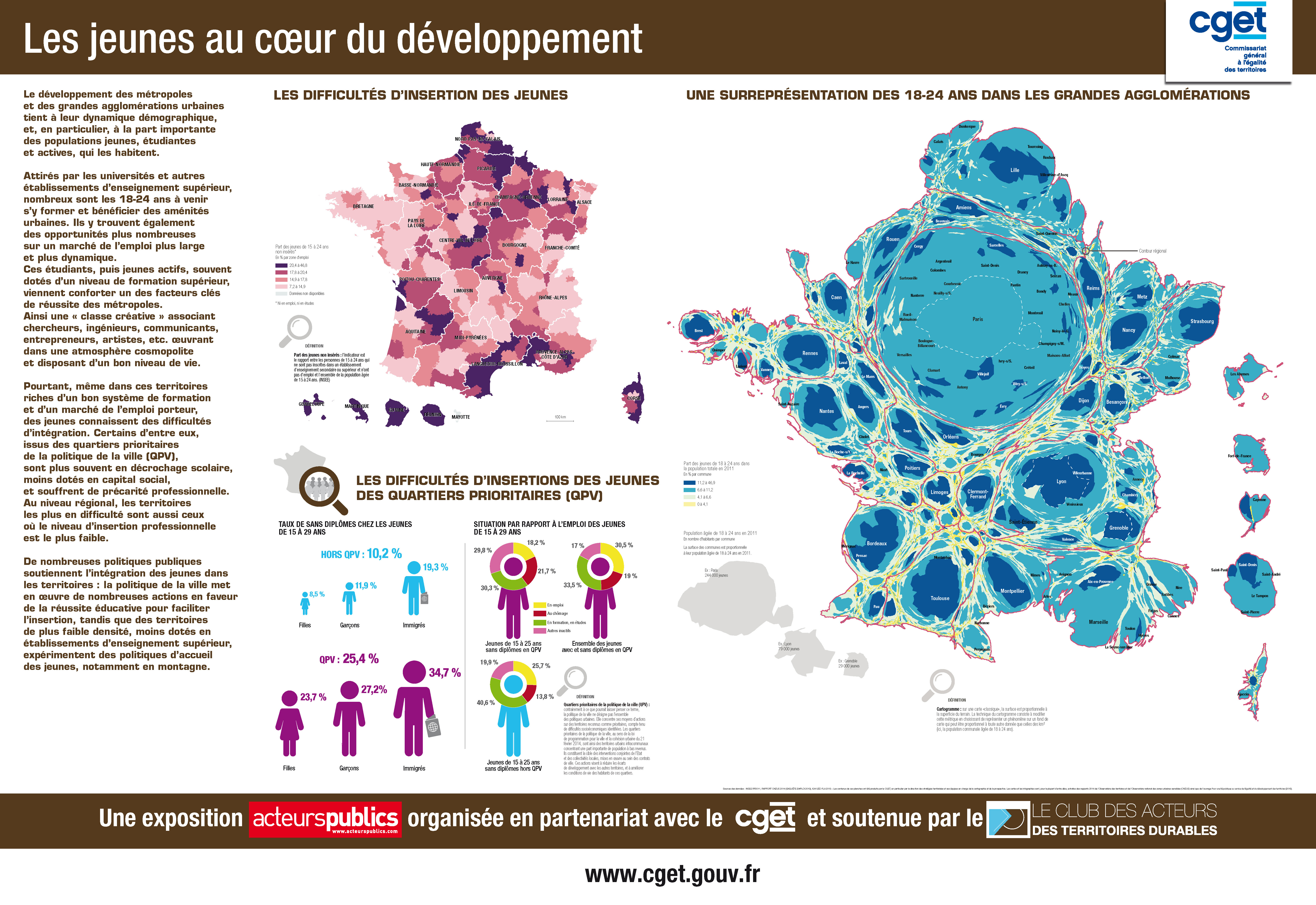 Le Commissariat général à l’égalité des territoires a conçu en partenariat avec Acteurs publics une exposition cartographique intitulée « habiter durablement de territoires » ; les cartes sont accompagnées de récits qui resituent les espaces français dans leurs dynamiques, marquent la diversité de leur trajectoire et soulignent certaines des difficultés qui en ressortent, en particulier en matière d’inégalités territoriales.