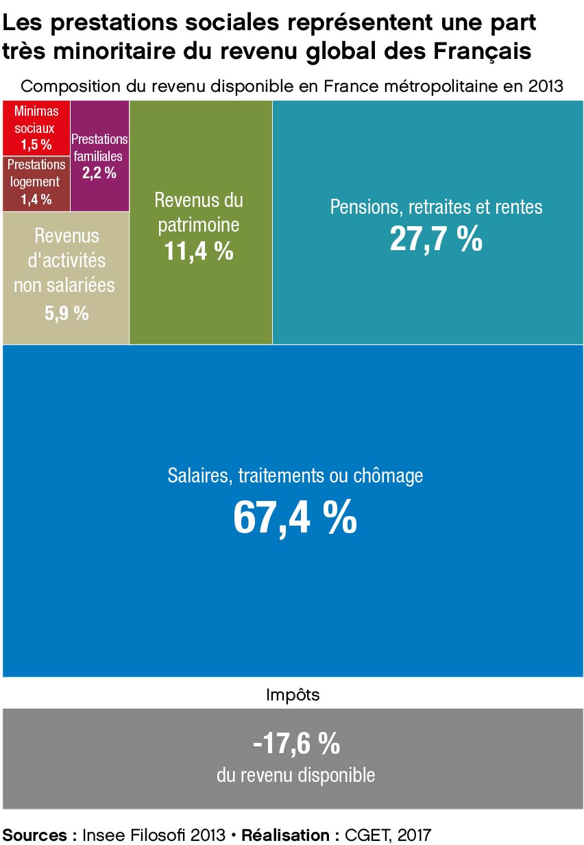 Les prestations sociales représentent une part très minoritaire du revenu global des Français