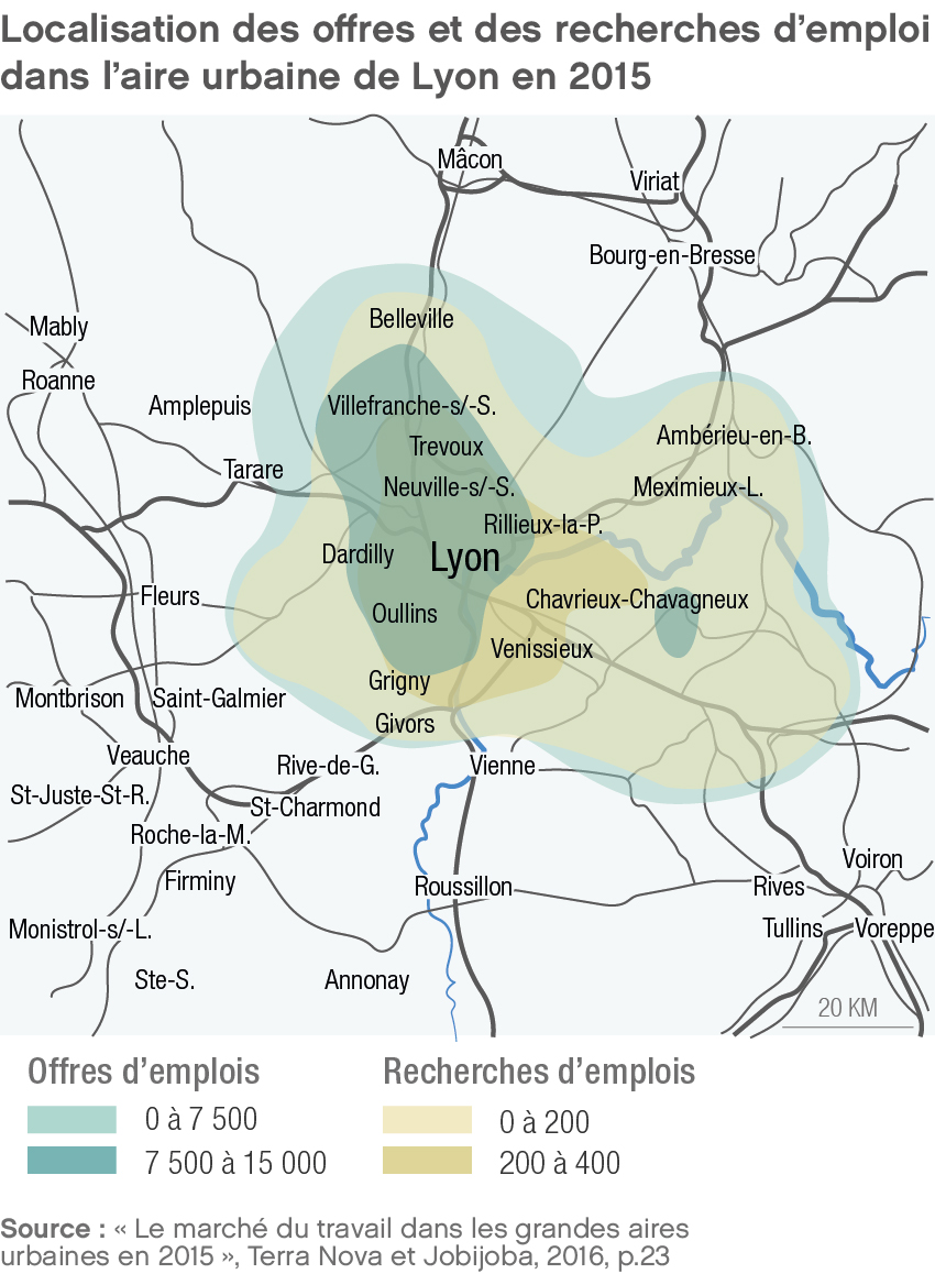 Source: Localisation des offres et des recherches d'emploi dans l'aire urbaine de Lyon en 2015