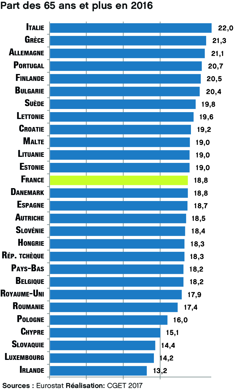 Part des 65 ans et plus en 2016
