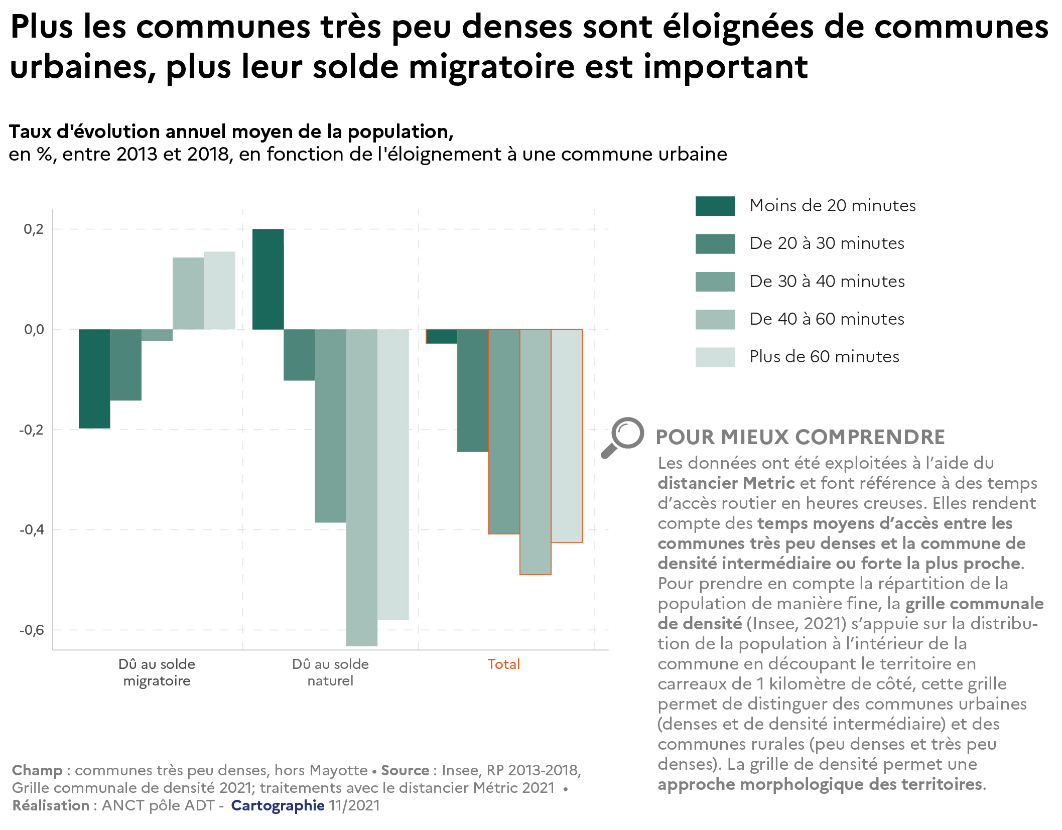 Type: Plus les communes très peu denses sont éloignées de communes urbaines, plus leur solde migratoire est important Échelle: France Année: 2022 Source: Plus les communes très peu denses sont éloignées de communes urbaines, plus leur solde migratoire est important