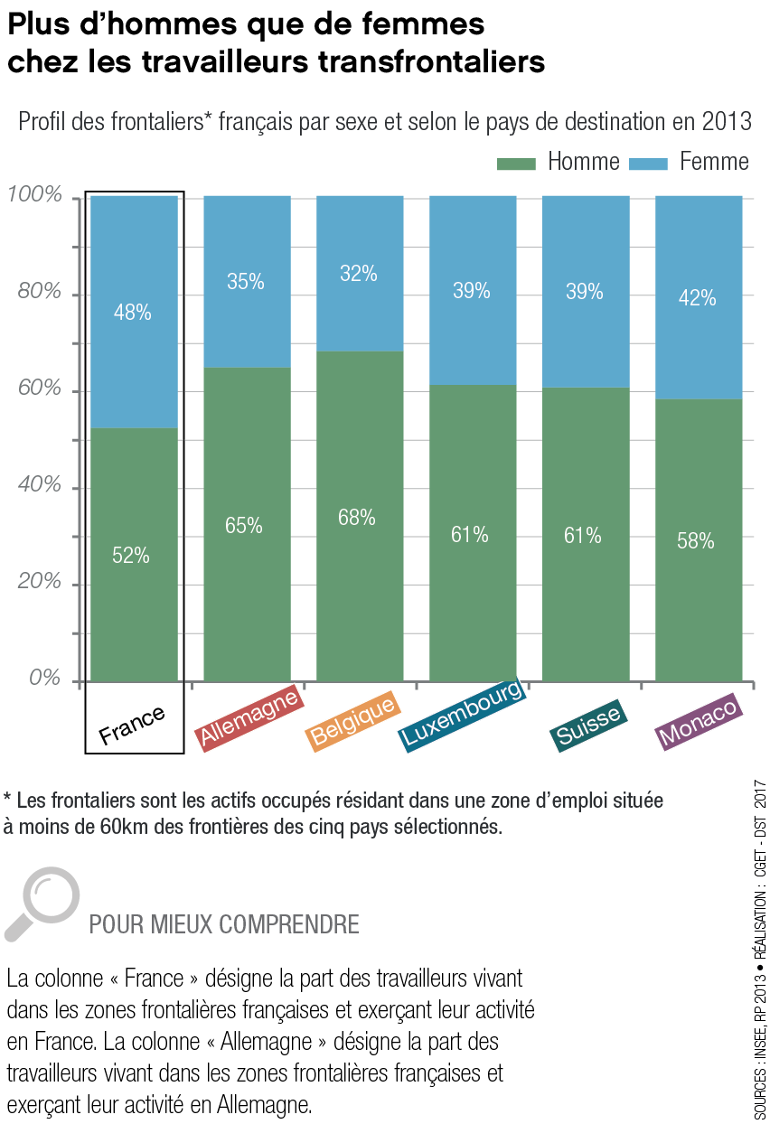 Source: Profil des frontaliers français par sexe et selon le pays de destination en 2013