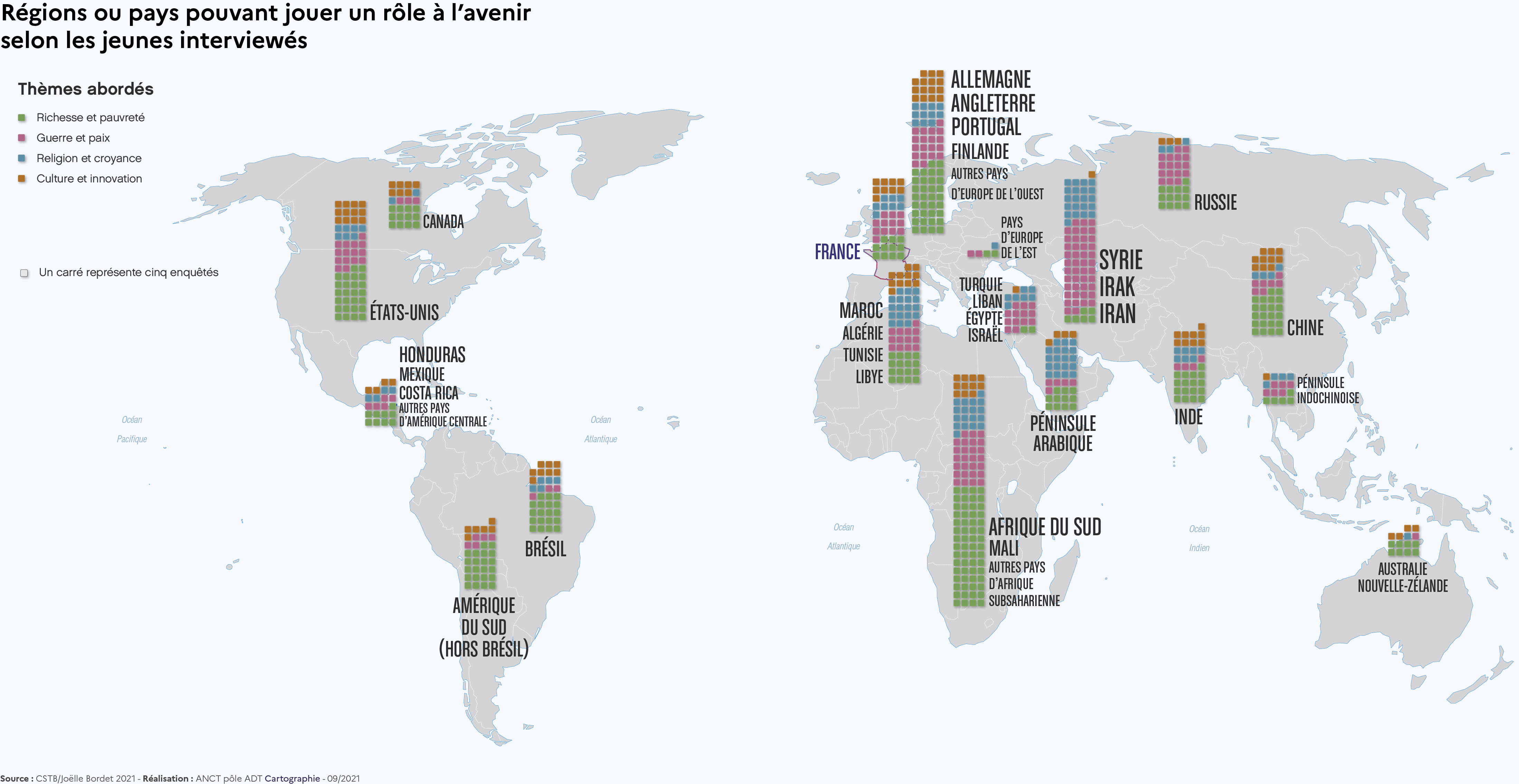 Régions ou pays pouvant jouer un rôle à l'avenir selon les jeunes interviewés