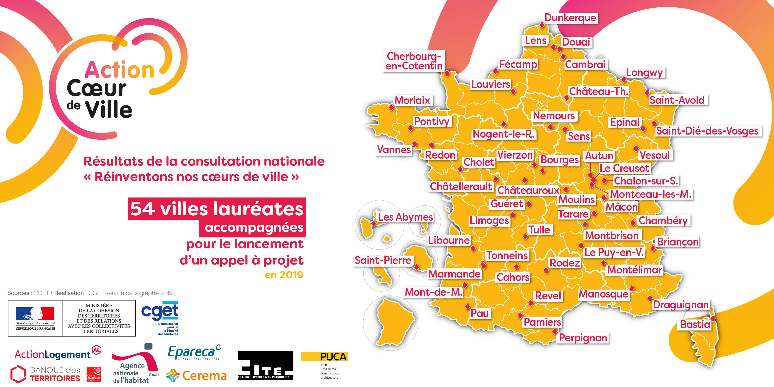Réinventons nos cœurs de ville : carte des villes lauréates