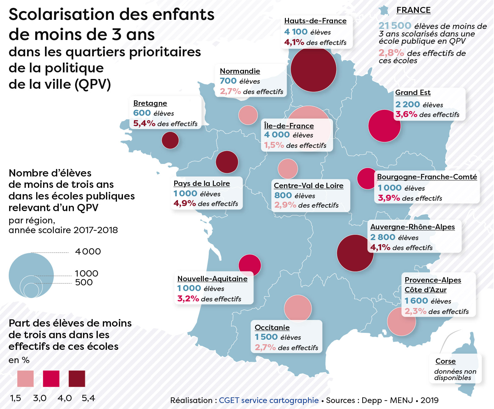 Échelle: Scolarisation des enfants de moins de 3 ans dans les quartiers prioritaires de la politique de la ville