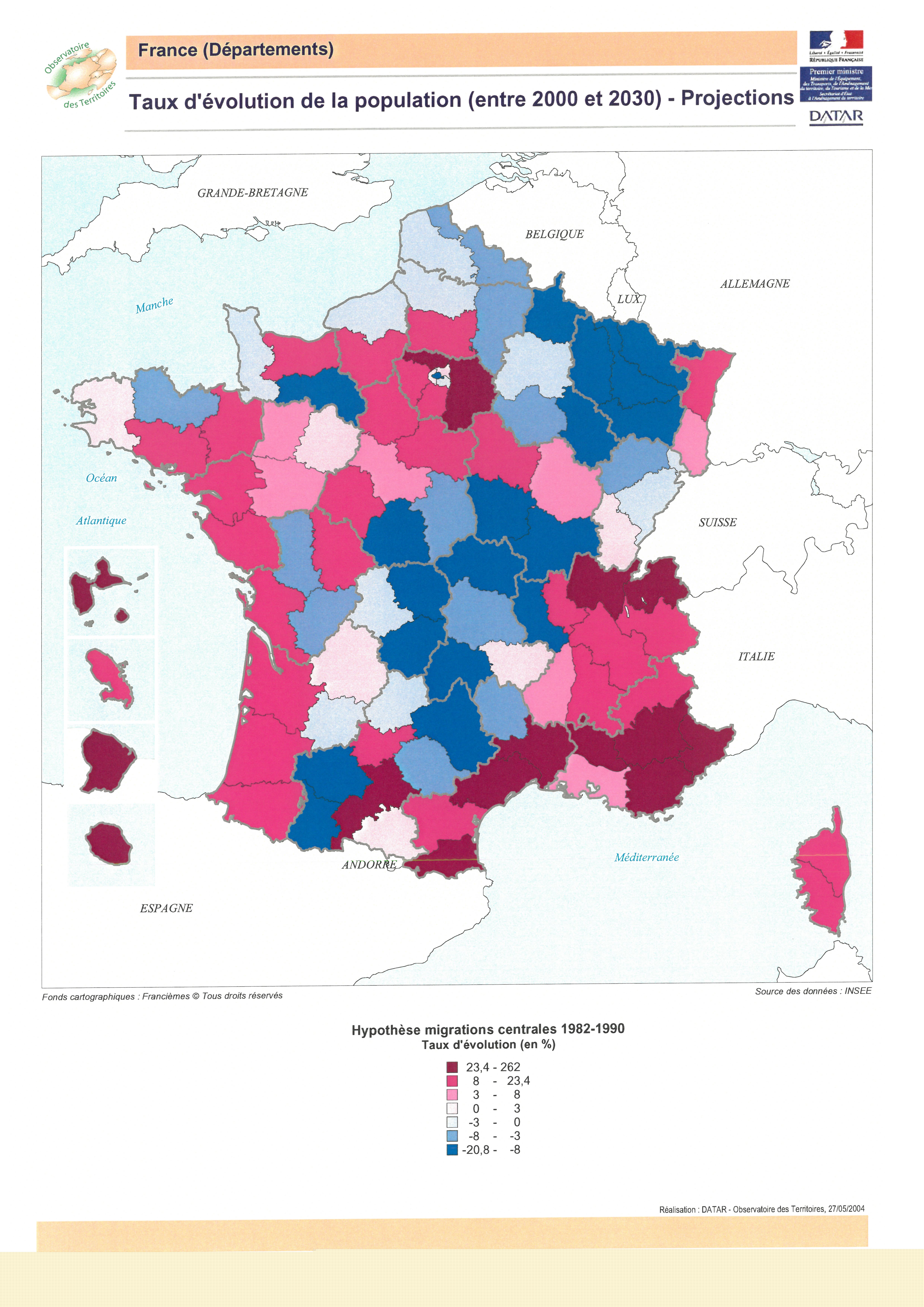 Source: Taux d'évolution de la population (entre 2000 2030) - Projections