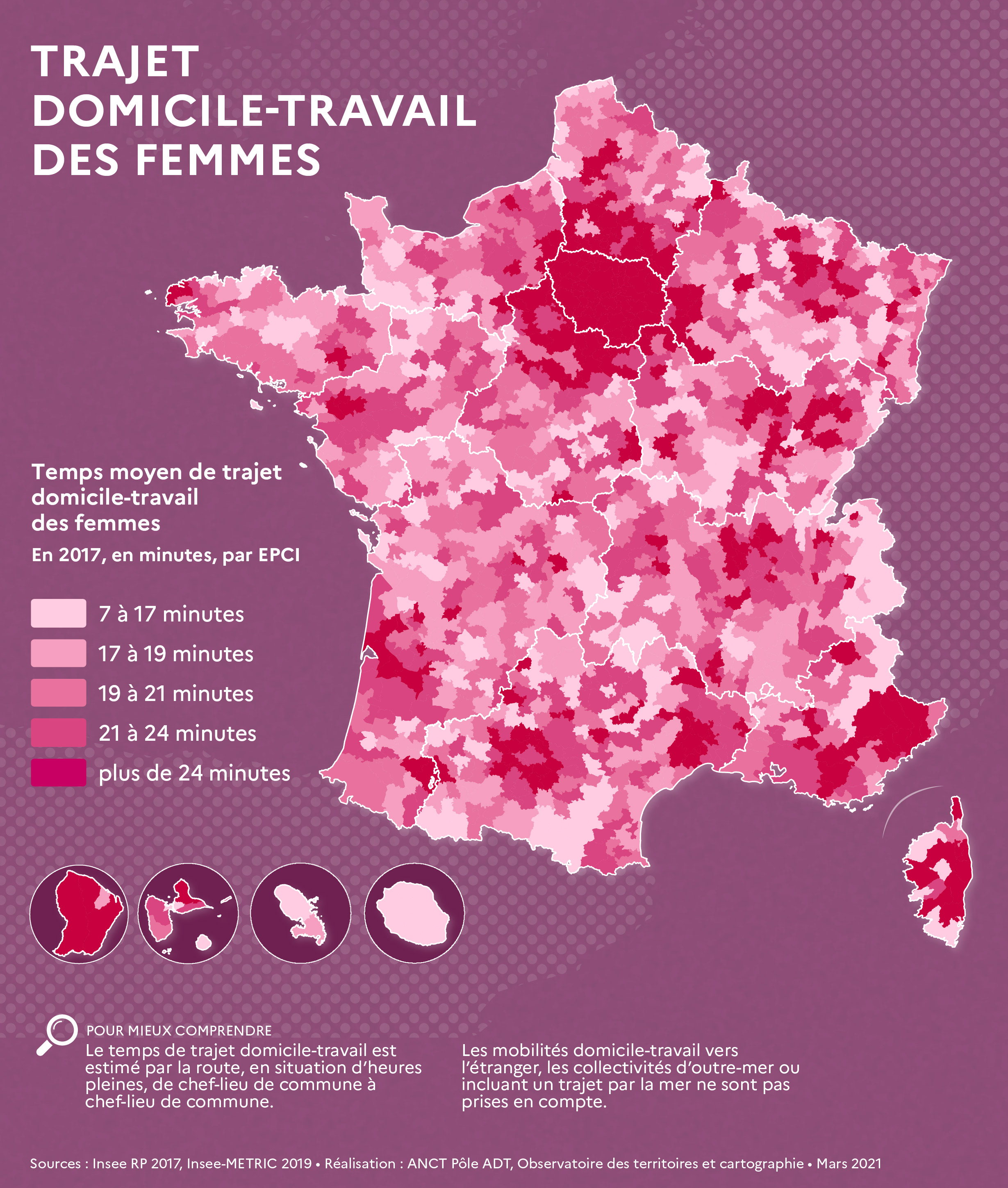 Temps moyens de trajet domicile / travail des femmes