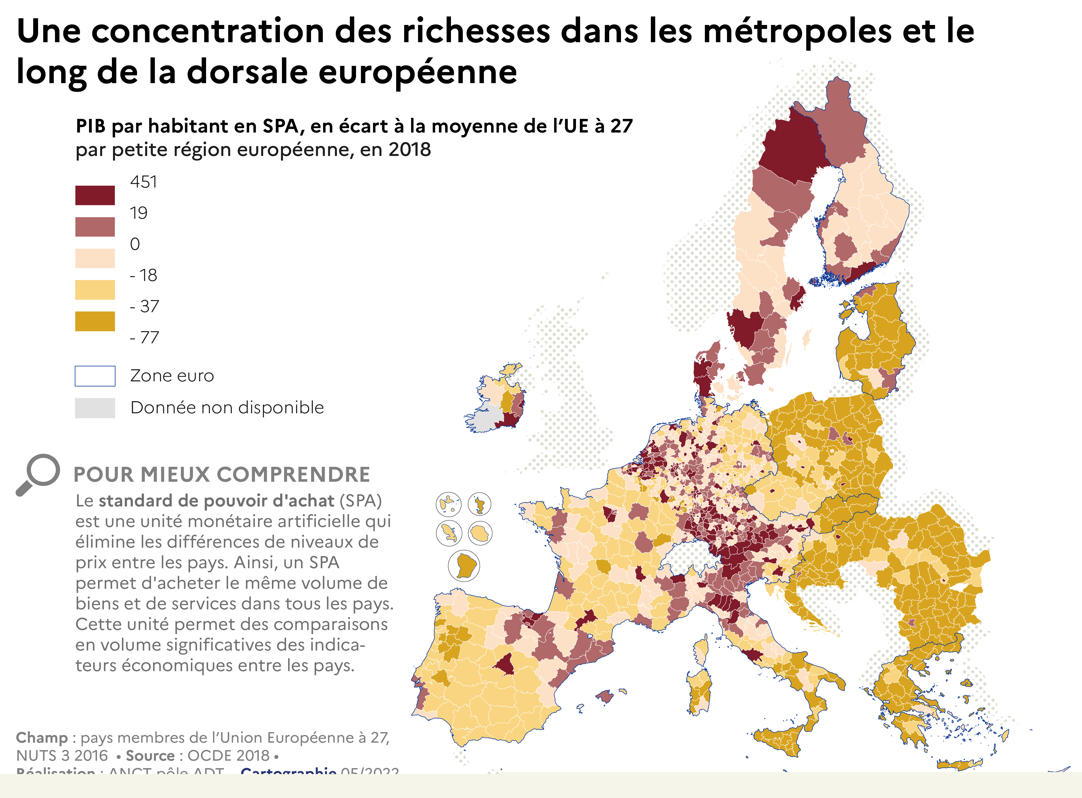 Une concentration des richesses dans les métropoles et le long de la dorsale européenne