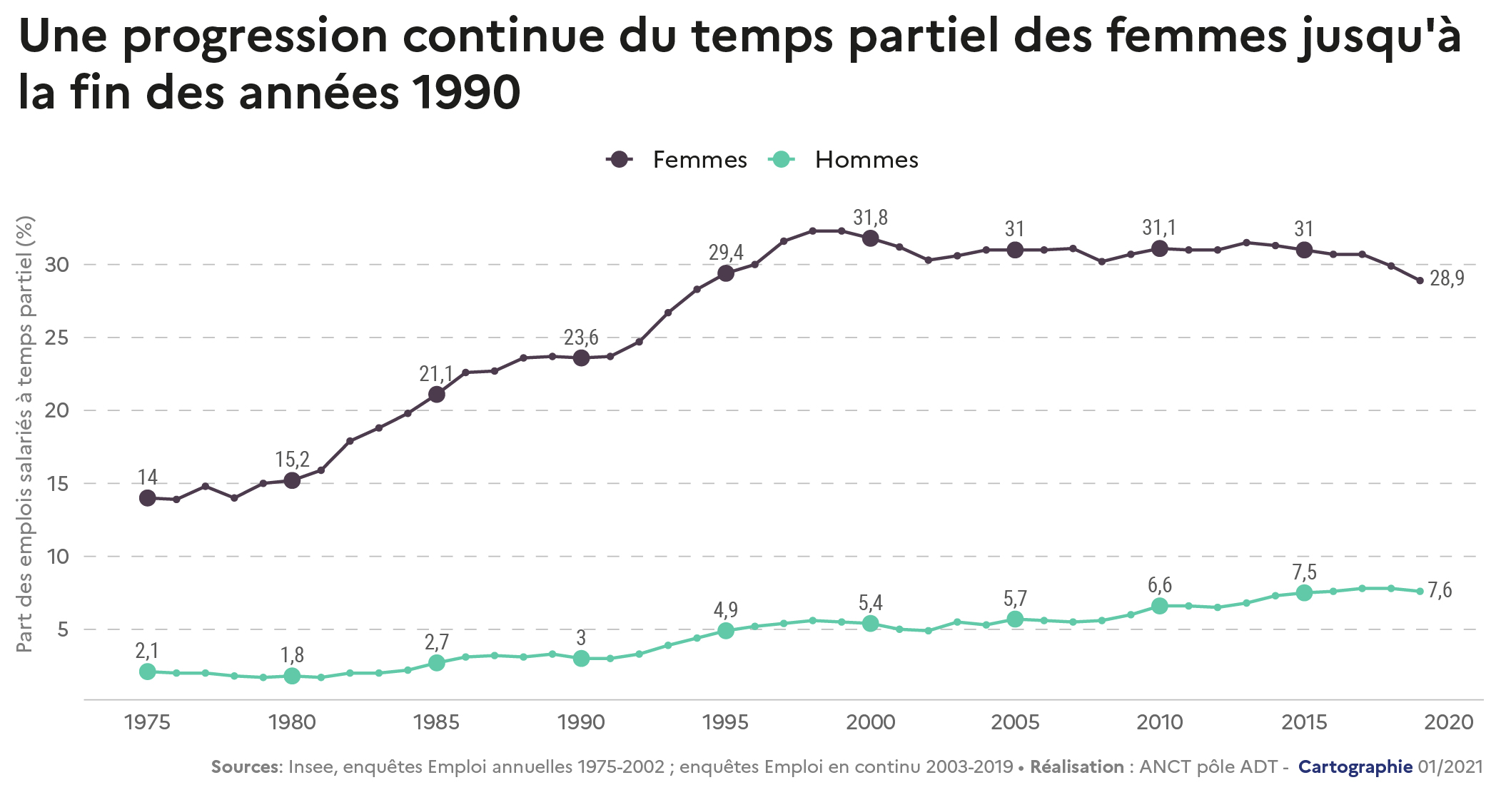 Une progression continue du temps partiel des femmes jusqu'à la fin des années 1990
