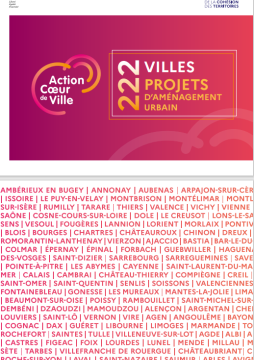 Image [Catalogue] 222 villes/projets d'aménagement urbain Économie, emploi et commerces Logement et urbanisme Publié le 02/09/2021 Les réalisations emblématiques des villes Action cœur de ville. Document(s) à télécharger Catalogue 222 villes/projets d'aménagement urbain Publié le : 02/09/2021 PDF - 12.39 Mo Partager via : Copier le lien de la page dans le presse-papier LinkedIn X Facebook