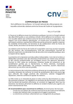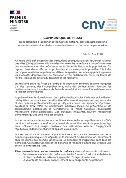 [Communiqué de presse] CNV - « De la défiance à la confiance : le Conseil national des villes propose une nouvelle culture des relations entre les forces de l'ordre et la population »